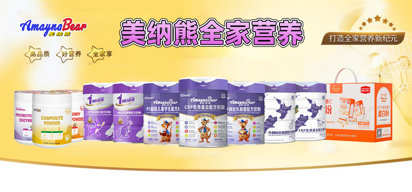 奶粉系列甄選新西蘭優(yōu)質(zhì)進(jìn)口奶源與高原生牛乳,秉承“聚合全球優(yōu)質(zhì)營養(yǎng),喂養(yǎng)中國寶寶”的品牌理念,產(chǎn)品涵蓋:AmaynaBear乳鐵蛋白兒童配方奶粉、AmaynaBear牛脾肽乳酸菌配方奶粉、美納熊牛脾肽乳酸菌配方奶粉、美納熊CBP乳鐵蛋白配方奶粉、美納熊PS腦肽兒童學(xué)生配方奶粉、1Mi95 HMO乳酸菌配方奶粉、1Mi95 CBP乳鐵蛋白配方奶粉等多款產(chǎn)品,全面支持兒童在自護(hù)力、成長力、吸收力、認(rèn)知力和視護(hù)力等方面的多維營養(yǎng)需求。