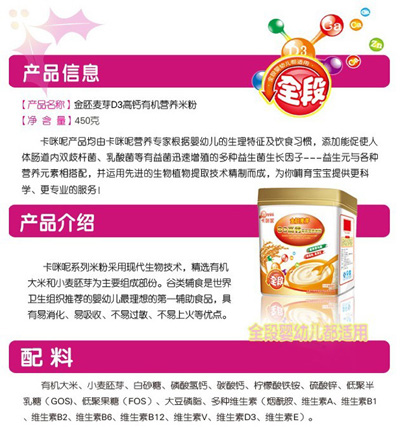 您所在位置:首頁>上?ㄟ淠啬笅胗闷酚邢薰>卡咪呢金胚麥芽D3高鈣有機(jī)營養(yǎng)米粉
