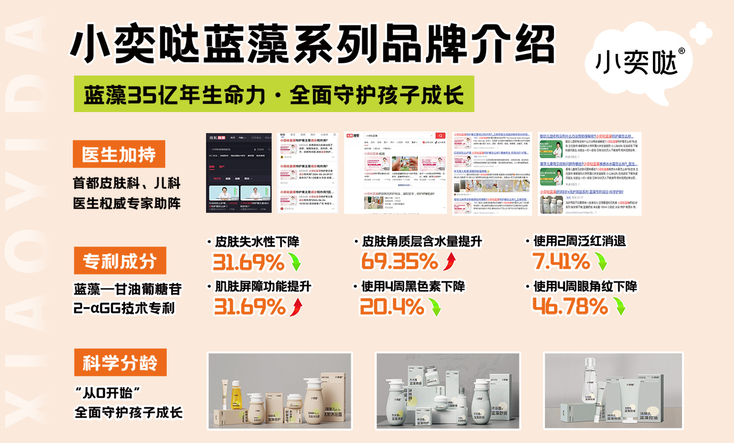 “小奕噠”是武漢達(dá)兒文生物科技有限公司旗下定位于嬰童保健與護(hù)理,擁有完全知識(shí)產(chǎn)權(quán)的品牌,該品牌產(chǎn)品由武漢達(dá)爾文設(shè)計(jì),“小奕噠”系列產(chǎn)品以純天然植物精華為產(chǎn)品原料,充分利用各種草本植物的作用機(jī)理科學(xué)組合配方,并發(fā)揮配方中各草本植物最大功效特點(diǎn),以先進(jìn)的提取工藝作為原料品質(zhì)保障,結(jié)合現(xiàn)代尖端設(shè)備和先進(jìn)的生產(chǎn)工藝、十萬級(jí)無菌生產(chǎn)環(huán)境及完善的GMP體系作為產(chǎn)品的質(zhì)量保證。