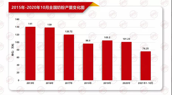 與零售價緩慢上漲相反的是今年奶粉產(chǎn)量呈下滑趨勢。據(jù)國家統(tǒng)計局?jǐn)?shù)據(jù),2021年1-10月,我國奶粉產(chǎn)量76.25萬噸,同比下降2.19%;而據(jù)海關(guān)數(shù)據(jù),2021年1-11月,我國嬰配粉進口量23.3萬噸,較去年下降24.1%,進口嬰配粉下滑較為嚴(yán)重。